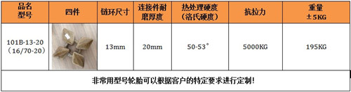 保養鏈耐磨性好,抗疲勞性強,根據使用條件壽命達3000-8000小時。拆裝方便,省時省力,產品規格齊全,可與進口裝載機所匹配,輪胎保護鏈,采用高科技耐磨材料制成其結構新穎緊湊,性能穩定,主要適用于礦山作業的裝載機,其輪胎磨損快,使用壽命短,輪胎價格昂貴,使用成本高,將本產品嚴密的包裹在裝載機的輪胎上,可以有效的保護裝載機的輪胎,不被尖銳的石塊劃傷刺破,延長了輪胎的使用壽命,使用一條輪胎保護鏈,能節省十條輪胎以上的費用還能提高裝載機的工作效率和安全是礦山作業的必備品。